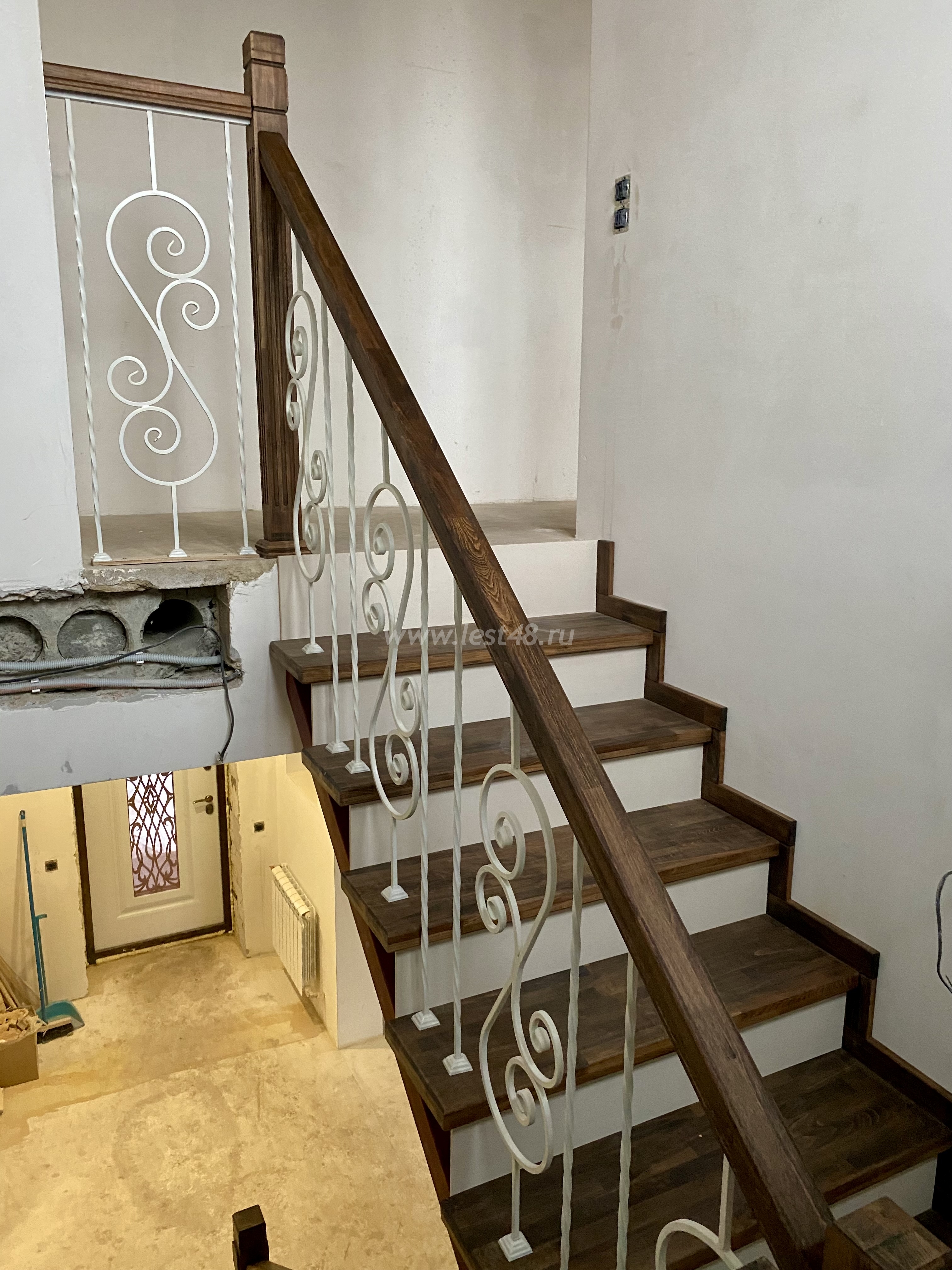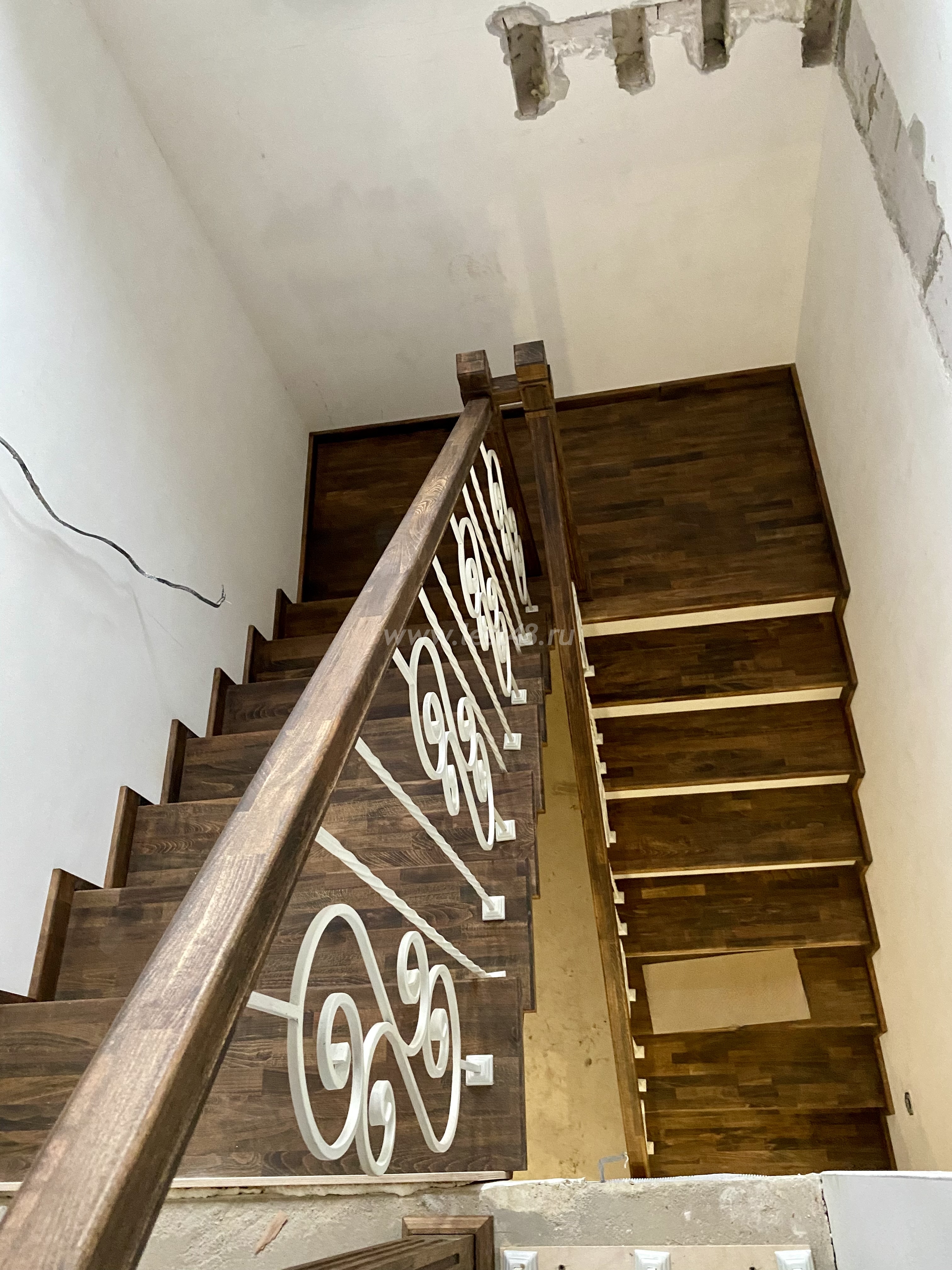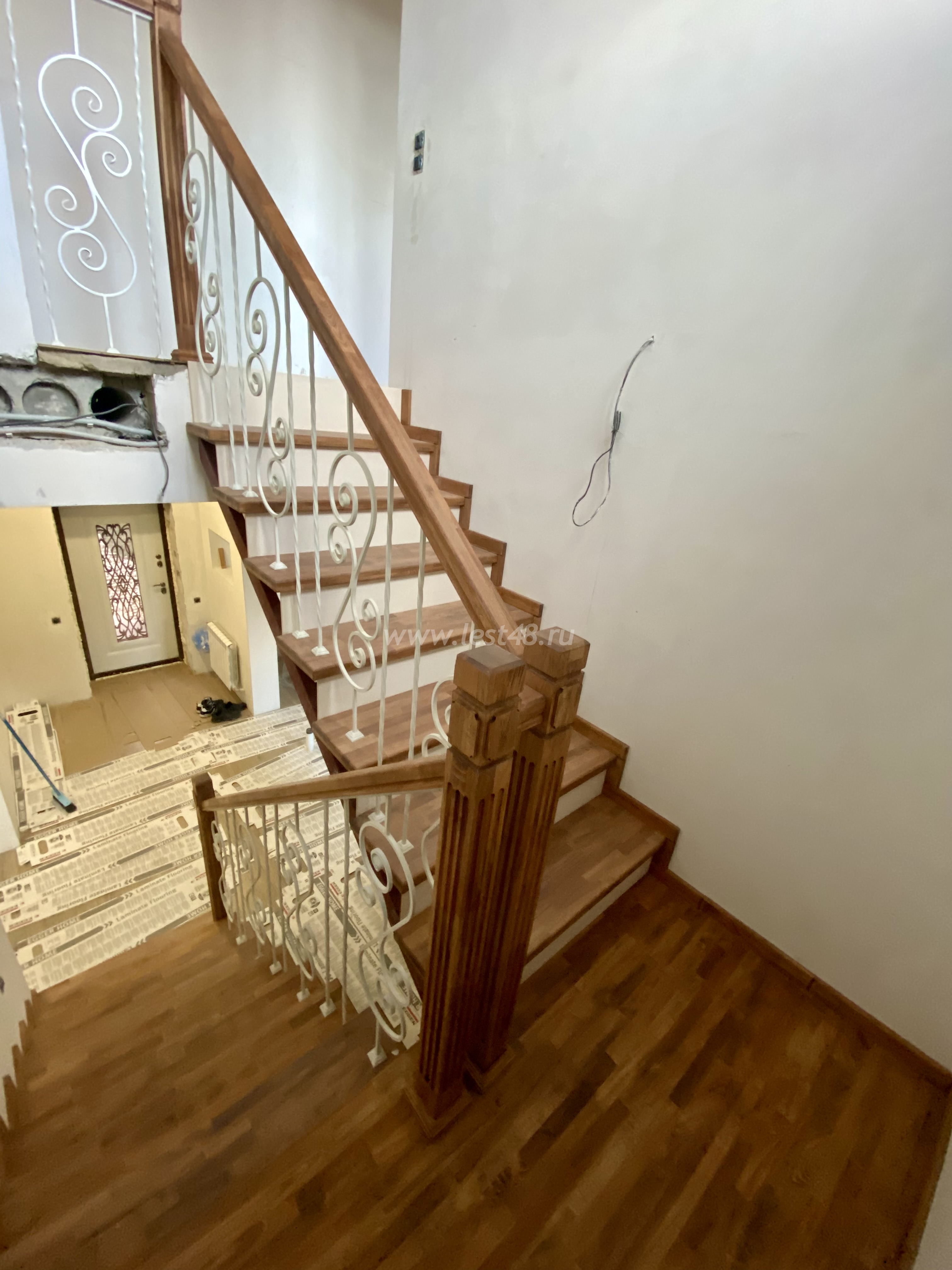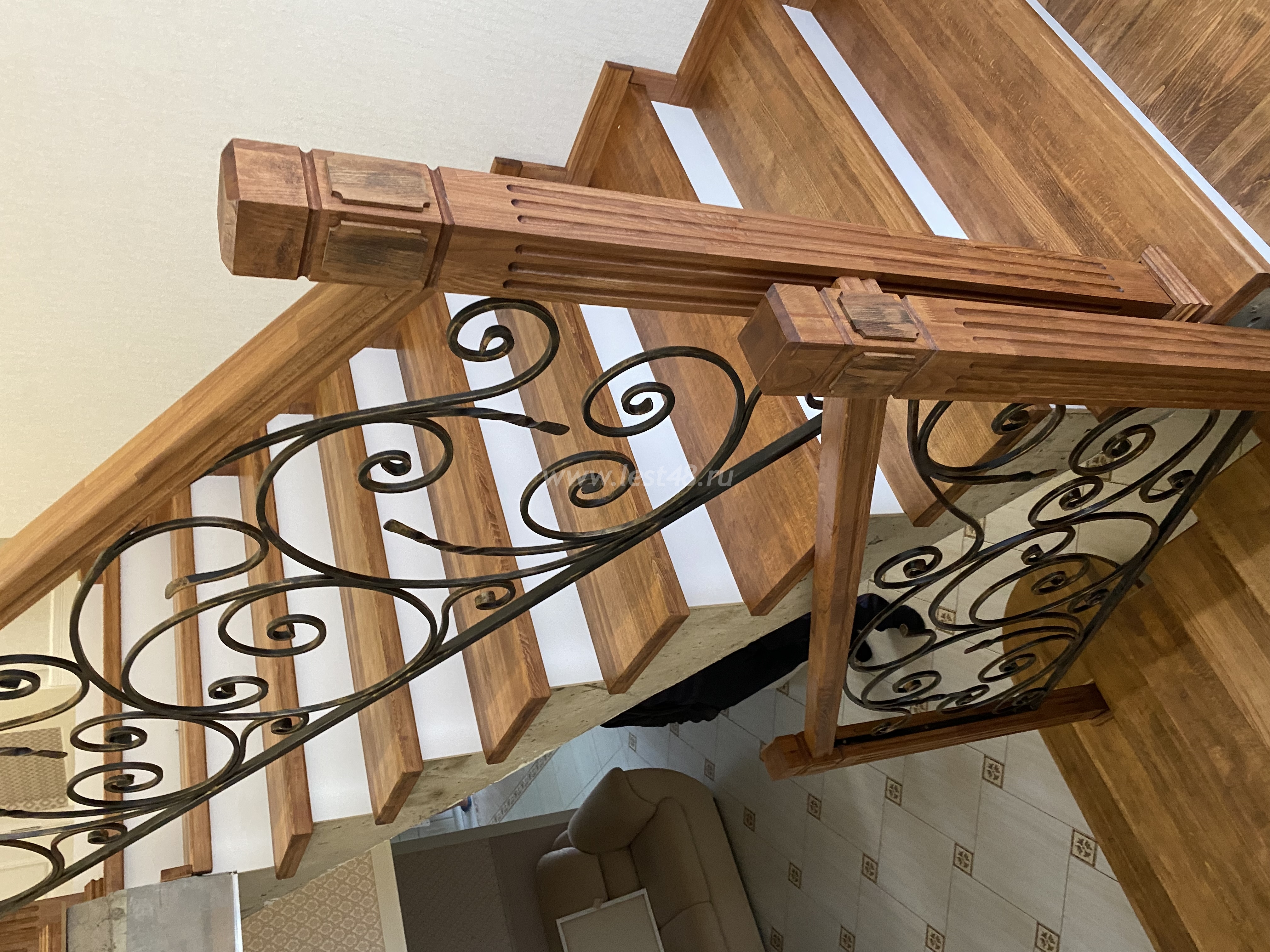 Эксклюзивная лестница из дуба с площадкой 01-07